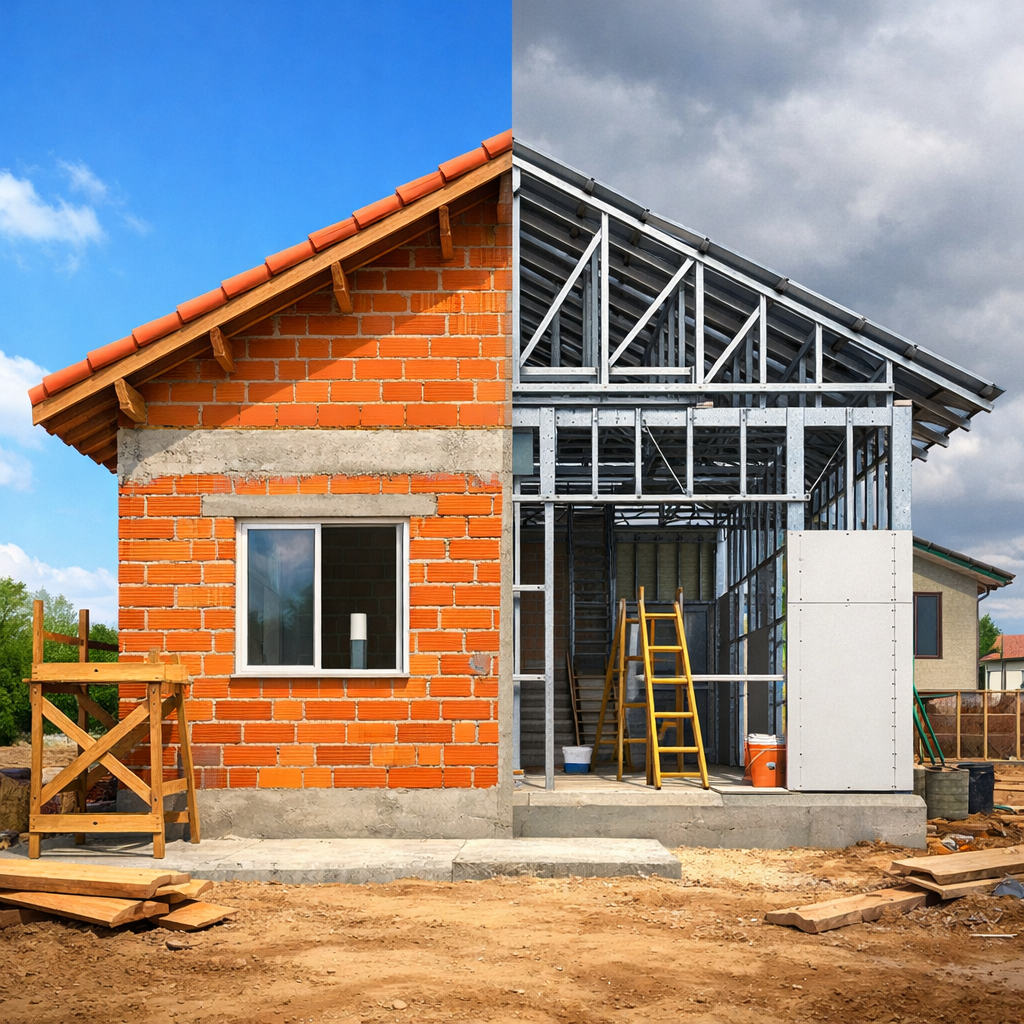 A escolha do sistema construtivo é uma das decisões mais estratégicas de qualquer obra. Entre as principais alternativas disponíveis no mercado estão a alvenaria com tijolo cerâmico, o bloco de concreto e os sistemas industrializados, como o steel frame.